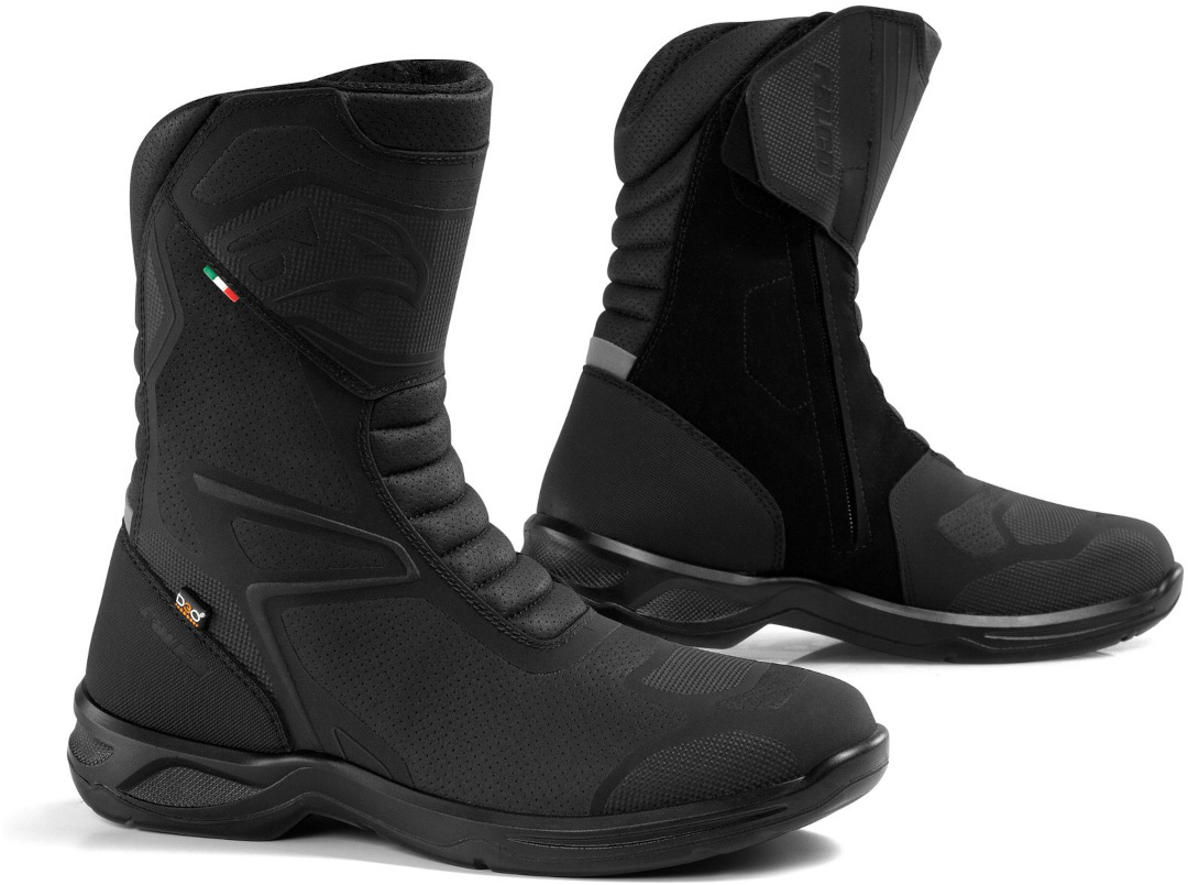 - Мембрана Falco устойчива к проникновению воды. Единственным научным испытанием, позволяющим определить, являются ли мотоциклетные ботинки водонепроницаемыми, является испытание, требуемое правилами EN 13634: 2010. Метод тестирования заключается в прохождении 100 шагов по подходящей платформе с уровнем воды на 5 мм выше подошвы. При успешном завершении этого теста ботинок считается водонепроницаемым