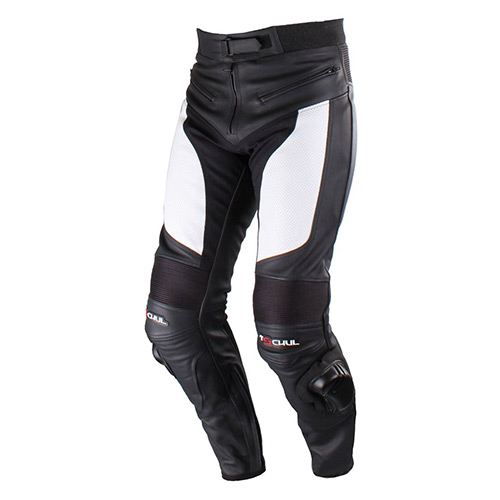 Популярным и незаменимым элементом экипировки у мотоциклистов являются кожаные мотоштаны, внешне они могут напоминать обычные мужские брюки. Экипировку шьют из самых прочных, износостойких и комфортных материалов, а главным отличием мотоэкипировки является специальная защита.